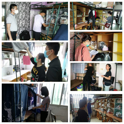 五一期间,学院领导、全体辅导员到达海涛楼,在原住在海涛楼的学生们的全力配合和支持下,对海涛楼110间宿舍的420位学生的物品进行整理、打包、封存及宿舍清理等工作,做细做实返校复学疫情防控准备工作。