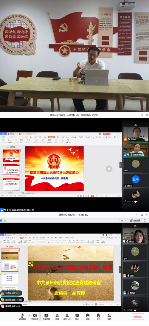 为深入贯彻福建省教工委《深化新时代学校思想政治理论课改革创新行动方案》的通知精神,近日,马克思主义学院分别邀请厦门市委党校副教授王刚、泉州市委党校副教授康燕雪和吴敬南等三位省高校思政课特聘教授走进我校课堂,在线上为本科生讲授思政课。我校300多名师生参与听课。