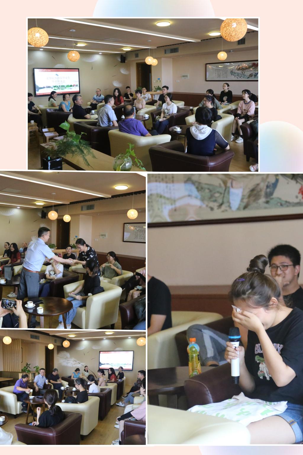 6月22日,文学院在尚大楼410咖啡厅举办欢送2020届毕业生座谈会。学院党委书记田建和、院长郑亮、副院长王惠蓉、党委副书记华晓春,各教研室主任、党委组织员、团委副书记、毕业班辅导员和在校全部毕业生参加座谈会。座谈会由华晓春主持。