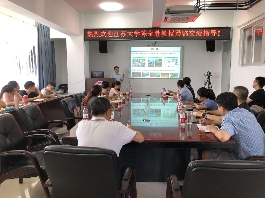 7月18日上午,江苏大学陈全胜教授应邀来食品与生物工程学院学术交流,并作了题为“食品质量安全快速智能检测技术及装备开发”的学术报告。报告由学院党委书记杨一青主持,学院部分教师及研究生参加了报告会。