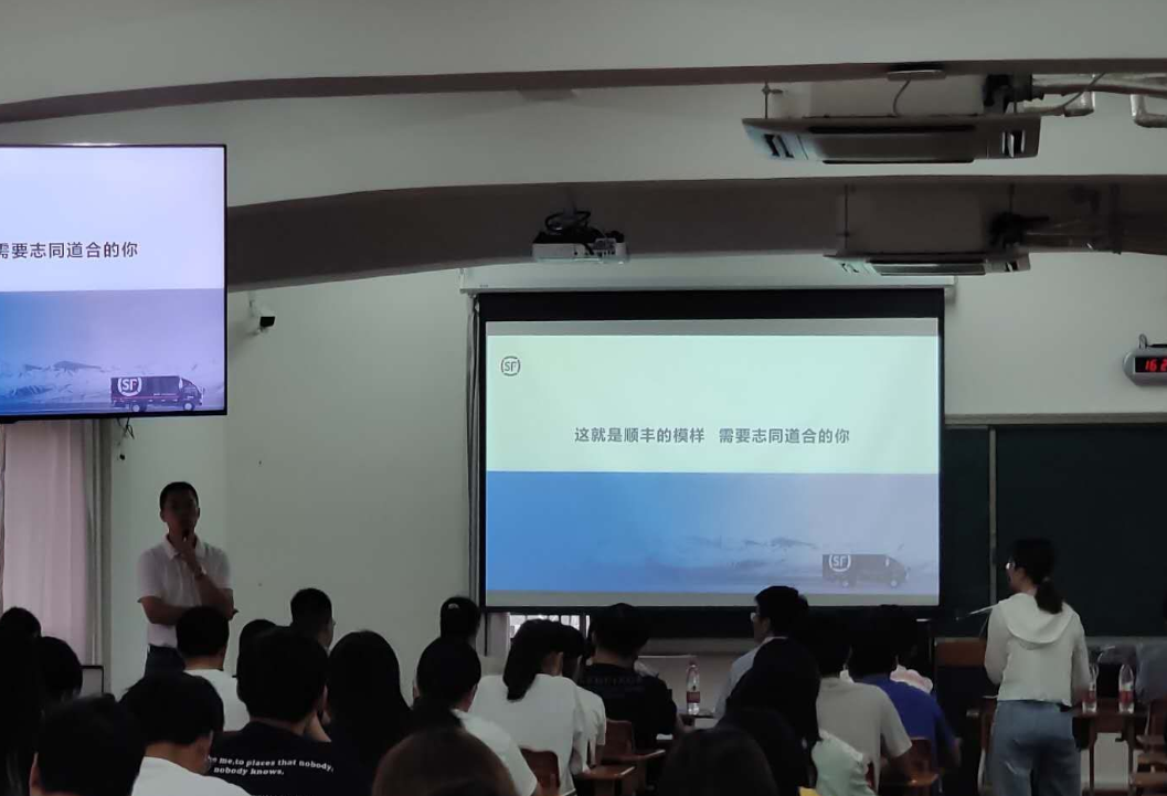 齐志涛就顺丰公司发展历程、企业文化、顺丰校招岗位、职工发展平台、“顺丰班”人才招募、培养模式等多个方面做了具体介绍。