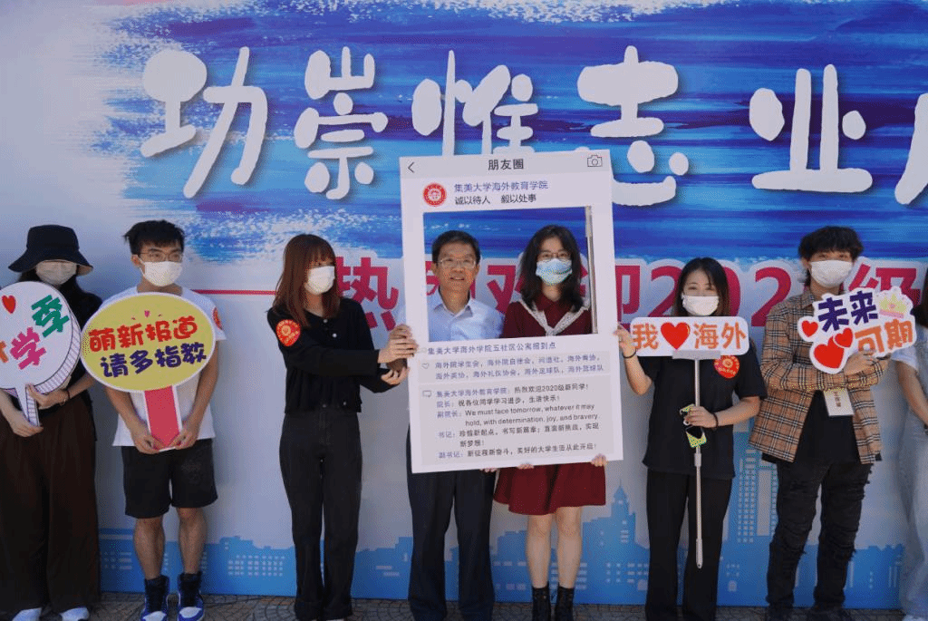 相遇集大,未来可期。10月9日,亚洲中文精品乱码2020级新生报到日,秋阳和煦,清风沁爽。海外教育学院报到点人潮涌动,561名满怀美好希望与梦想的2020级新同学陆续来校报到。上午,校党委副书记、校长李清彪来到海外教育学院迎新现场,并和同学们亲切合影,现场师生备受鼓舞。