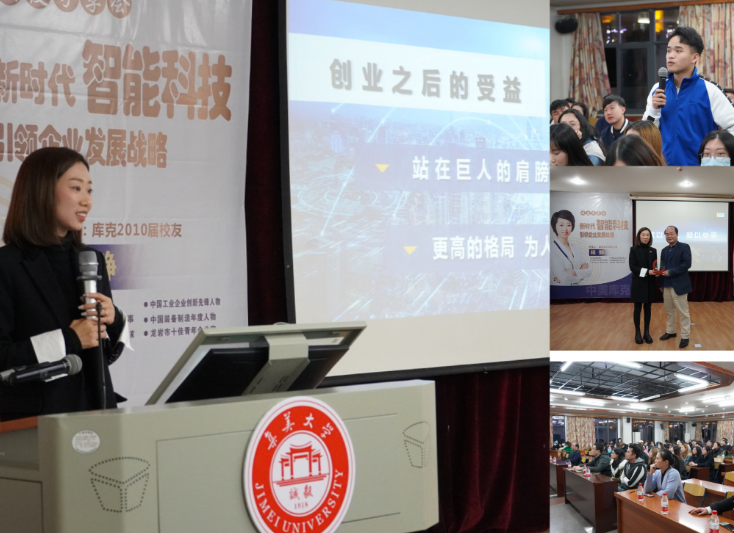 作为龙合智能装备制造有限公司董事长,杨静校友结合企业管理经验和库克项目课程《职业生涯规划--体验式学习》,以“营利组织与创新创业组织体验”主题,对人工智能科技在物流行业中的贡献和跨时代转变的意义进行了介绍,分享了她在大学学习过程中的收获与感悟,交流了她在美国库克大学读研的经历与成长。