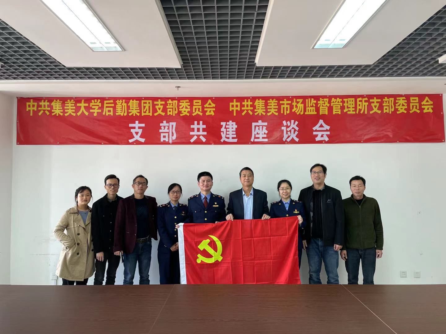 3月24日上午,后勤集团党支部与集美市场监督管理所党支部在尚大楼1118会议室举行支部共建项目推进座谈会。集美市场监督管理所党支部书记、所长陈荣旋,区市场监督管理局质量科科长黄莉莉,后勤集团党支部书记、总经理等人参加座谈会。