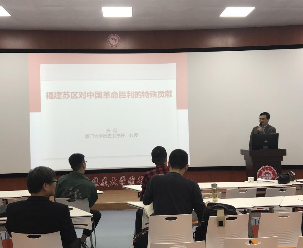 近日,图书馆邀请厦门大学人文学院历史系主任,博士生导师张侃教授作关于“福建苏区对中国革命胜利的特殊贡献”的专题讲座。