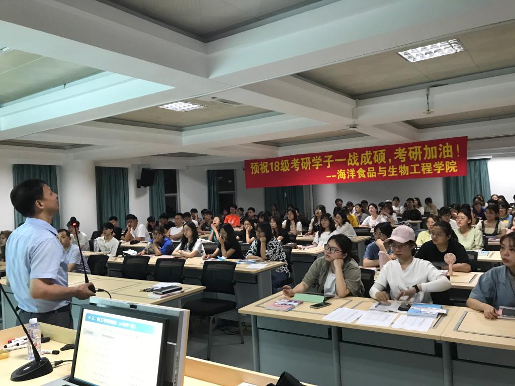 5月12日,海洋食品与生物工程学院召开2018级本科生考研动员会,院党委副书记朱坤道、副院长倪辉出席并作了动员讲话,18级学生及辅导员参加了会议。