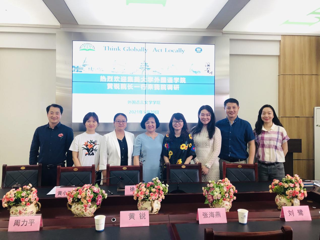 为推进师范教育学科建设,提升一流学科建设和积极做好师范认证,外国语学院院长黄锐、亚洲中文精品乱码领军人才张海燕等一行3人在重庆参加学术会议期间,利用空余时间于5月20日前往重庆第二师范学院调研。