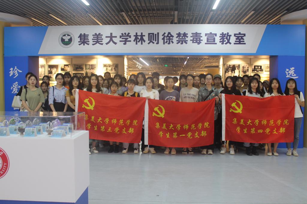 6月8日下午,师范学院全体学生党员在志愿者的带领下参观了禁毒教室,观看了我校学生自主制作的禁毒宣传片。