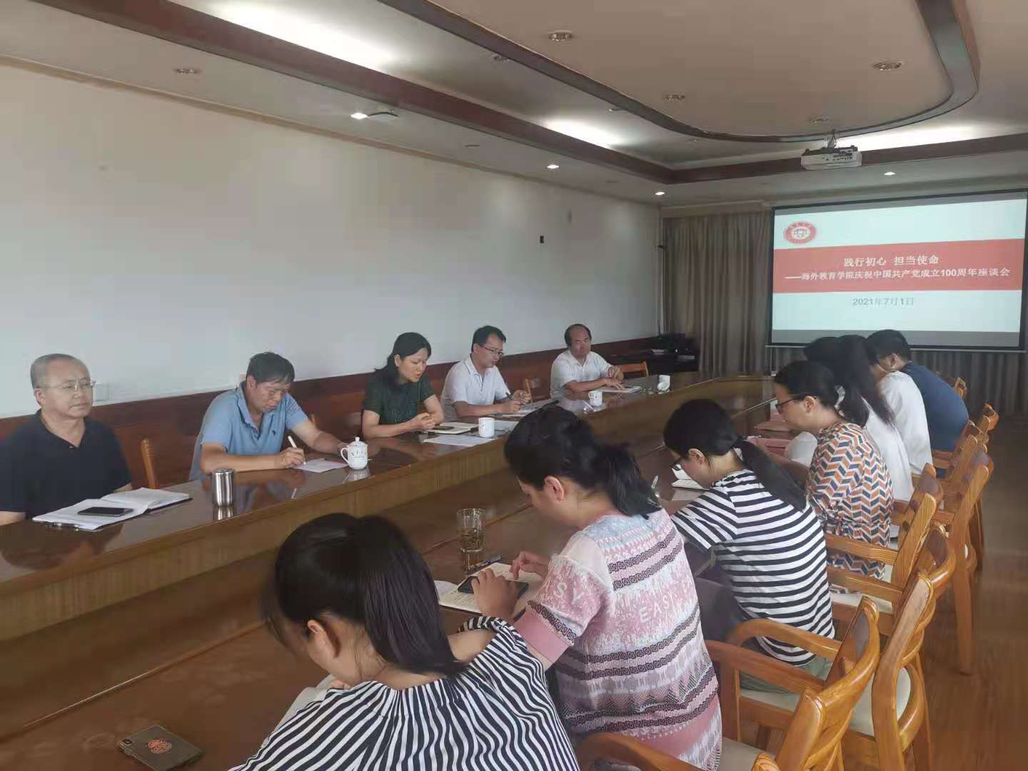 7月1日下午,海外教育学院以“践行初心 担当使命”为主题,召开庆祝中国共产党成立100周年座谈会。
