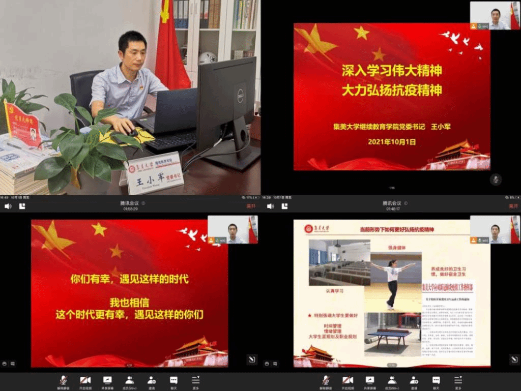 10月1日,继续教育学院党委书记王小军以《深入学习伟大精神 大力弘扬抗疫精神》为主题上了一堂生动的线上思政课,和学院全体同学用特殊的方式庆祝中华人民共和国成立72周年。