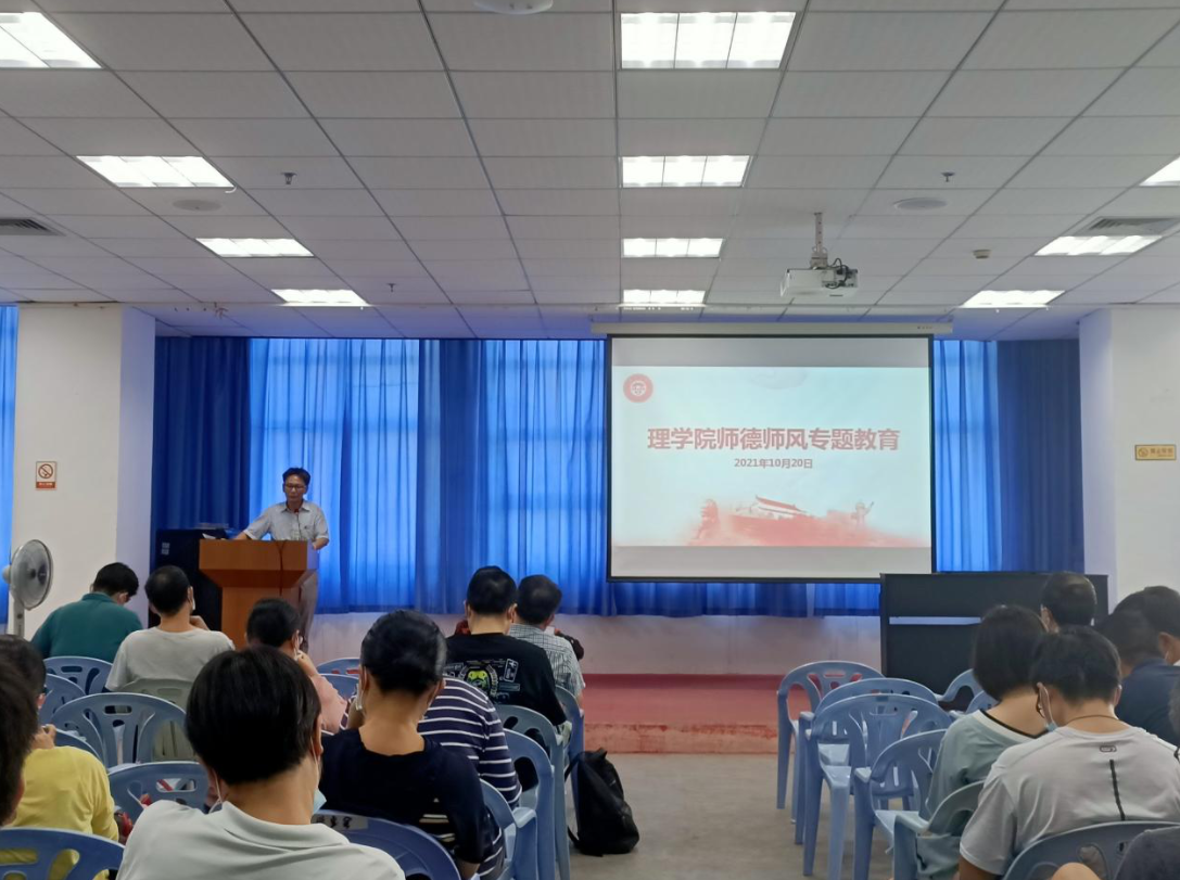 10月20日下午,理学院召开师德师风专题教育大会,会议由学院党委书记吴连星主持召开,全院一百余名教师参加。
