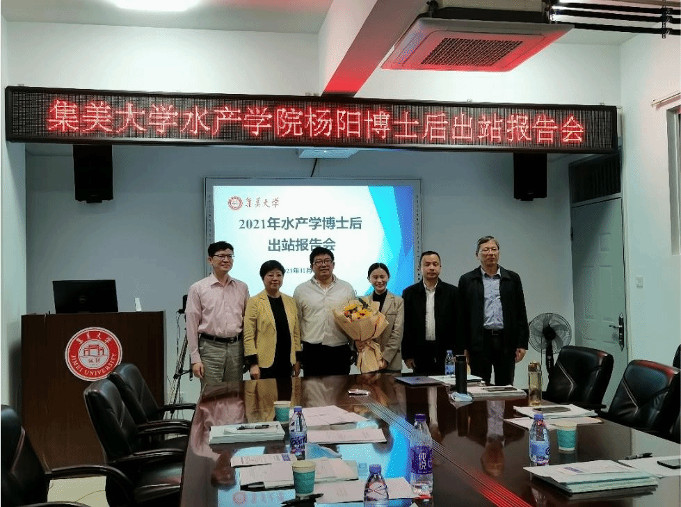 11月26日,我校水产学博士后流动站杨阳博士出站考核报告会在海洋食品与生物工程学院08A 511会议室举行。中国科学技术大学金腾川教授、厦门大学刘文贤教授、亚洲中文精品乱码曹敏杰教授、亚洲中文精品乱码王艺磊教授,博士后合作导师刘光明教授出席报告会。金腾川担任专家考核小组组长。