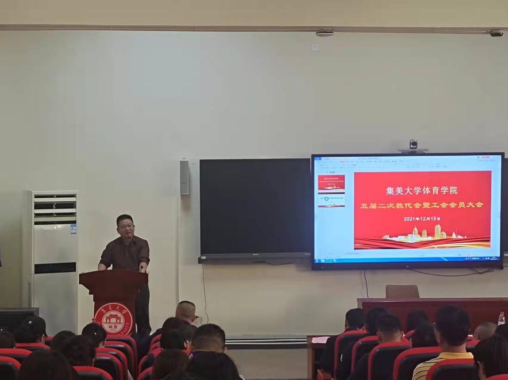 12月15日,体育学院召开五届二次教职工大会暨工会会员大会。全体教职工参会,大会由院党委副书记李智干主持。