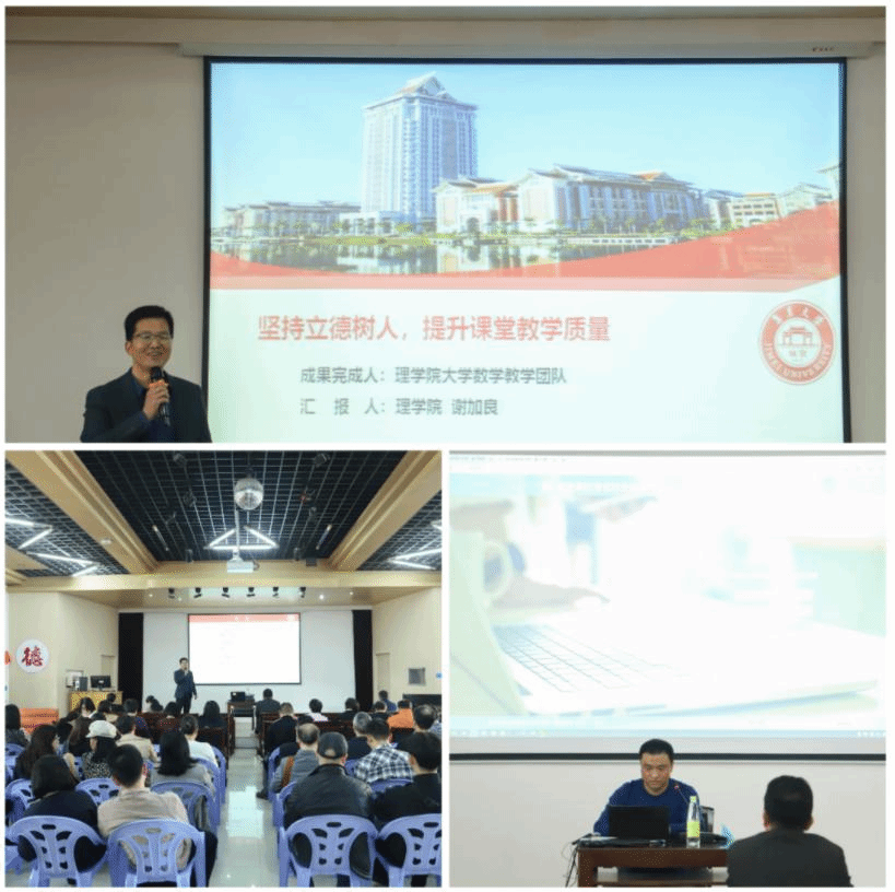 谢加良就学习“深化新时代教育改革的总体方案”进行分享,并以线性代数课堂教学为例,分析常态课堂教学中存在的问题与痛点,他强调应根据“点、线、面、体”的立体结构化思维,将碎片化理论系统化。他围绕教学目标、模式、内容、组织与方法的改革,分享将思政理念融入课堂的具体做法,正向引导学生,做细做实课堂教学工作。