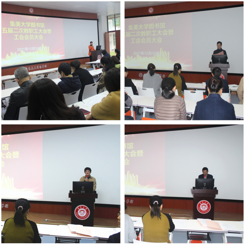 12月30日,图书馆五届二次教职工大会暨工会会员大会在嘉庚馆一楼报告厅召开,图书馆职工共69人参会,会议由图书馆办公室主任金健主持。