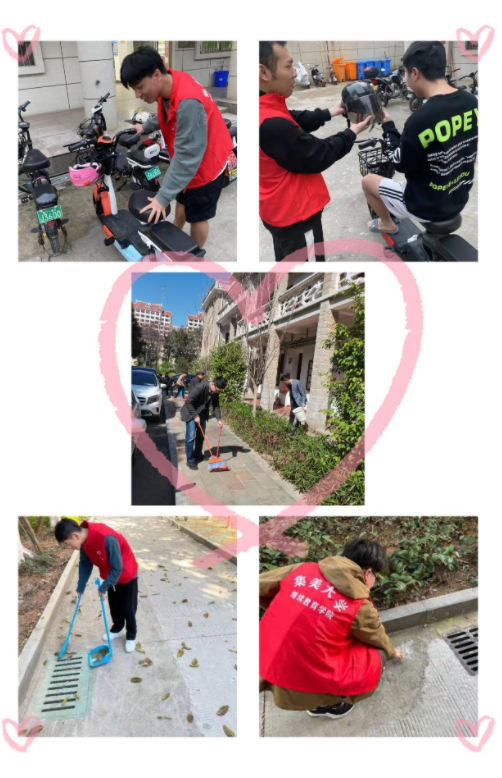 活动中,师生党员带头做表率,全体师生积极参与,分别对办公楼和宿舍、楼道、公共卫厕等区域进行大扫除,清理垃圾、杂物、积尘等。学院组织志愿者、自律会成员对宿舍卫生、楼层通道、垃圾分类投放进行全面检查督导,引导学生养成良好生活卫生习惯,共同营造良好健康的生活环境,同时在各个区域引导师生自觉遵守交通法律法规和校园交通管理规定,争做文明交通的倡导者、实践者、推动者和监督者。