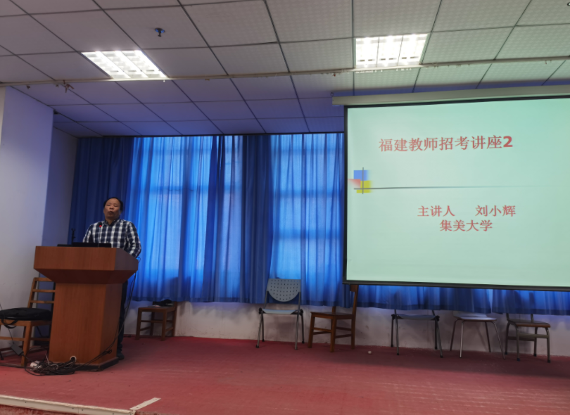 会上,刘小辉凭着积累的经验和丰富的阅历,详细介绍了教师招考笔试的内容范围、教法的备考准备,给同学们分析并讲解了笔试的题型,帮助同学们在考试中更系统全面地答题,并希望同学们注重培养教师技能,将所学的理论知识与实际教学相结合。