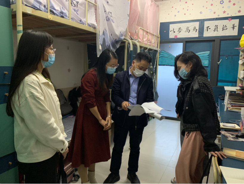 近日,马克思主义学院党委书记王娟、常务副院长张劲松、团委副书记陈志娜和辅导员王妙莹深入宿舍看望学生,和学生亲切交流,介绍当前国内外疫情形势,了解学生疫情期间的思想动态、学习进展和身心状况。