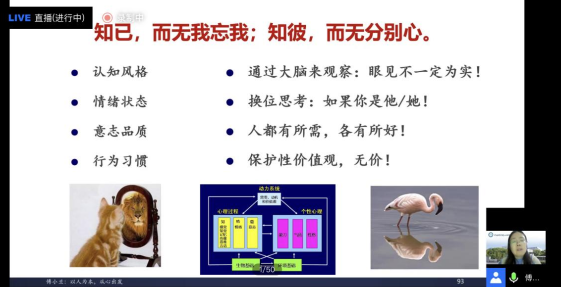 面对当前严峻复杂的疫情防控形势,为帮助学生更好地调节心理状态,3月23日晚,校心理咨询中心举办了“心理学很有用”为主题的线上心理讲座。本次讲座由中科院心理所所长、博导傅小兰教授主讲,近4000名同学聆听了讲座。