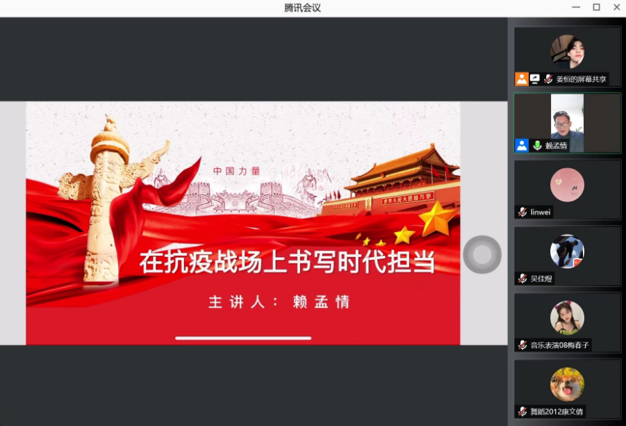 3月25日晚,音乐学院党委书记赖孟情以《在抗疫战场上书写时代担当》为题在云端给学院学生党员、入党积极分子以及全体学生干部上了一堂战疫思政课,给大家打了一剂强心针。