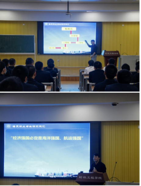 4月20日下午,轮机工程学院于育志楼227教室举办了“薪火相传、共赴深蓝”航海文化系列教育活动之“乘风破浪赴深蓝,海洋强国有你我”海员职业与生活交流讲座。本场讲座由辅机教研室陈明亮轮机长主讲,院党委副书记赖龙荣、海上专业辅员以及海上专业学生代表参加了本次讲座。