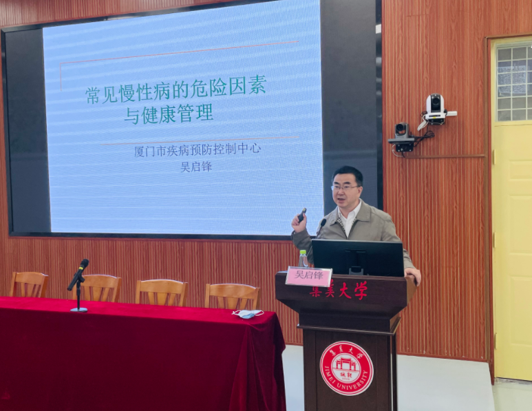 近日,航海学院邀请厦门疾控中心党委书记吴启锋作题为《常见慢性病的危险因素与健康管理》的健康知识专题讲座。全体教职工聆听了本次讲座。会议由院党委书记兰莉芸主持。