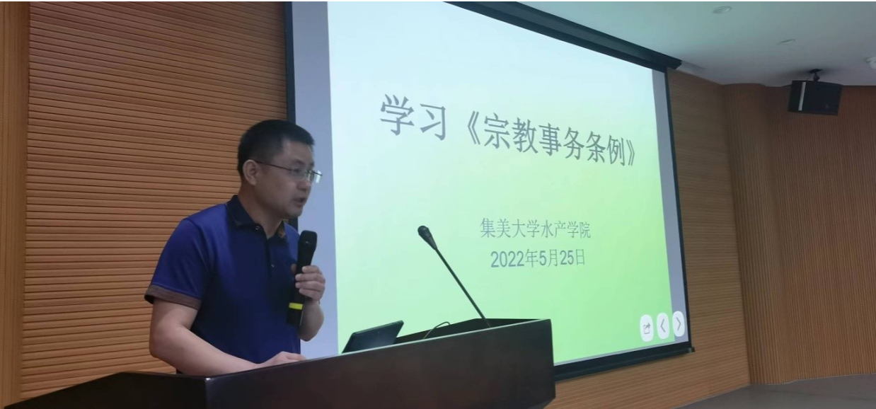 5月25日下午,水产学院组织全院教职工学习国务院《宗教事务条例》和《福建省宗教事务条例》。