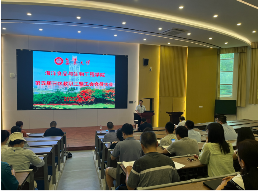 6月8日,海洋食品与生物工程学院召开五届三次教职工暨工会会员大会。会议由学院党委副书记朱坤道主持。学院全体教职工和工会会员参加了大会。