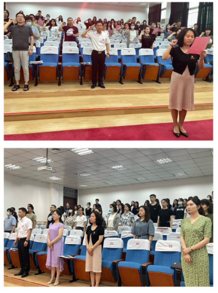 仪式在庄严的《国际歌》声中拉开帷幕,全体党员面向党旗,共同发出了为共产主义奋斗终身的铮铮誓言,表达了积极进取,争创一流的决心。新党员代表林小彭发言,表示要牢记诚毅校训,弘扬嘉庚精神,苦练本领,努力成为青年先锋,在服务师生,争创一流中践行自己的初心使命。学院党委书记赖孟情总结致辞,对全体党员提出了殷切期望:一要对党绝对忠诚,牢记初心使命;二要胸怀国之大者,认真履职尽责;三要加强党性锻炼,坚定理想信念。他强调,今年是党的二十大召开之年,是学校推进“十四五”时期高质量发展和新一轮“双一流”建设的落实深化之年,全体党员要进一步凝聚思想共识,以优异成绩迎接党的二十大胜利召开。