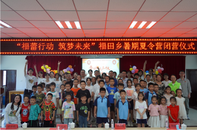 7月23日下午,“福蕾行动,筑梦未来”暑期夏令营闭营仪式在福田乡政府召开,校团委书记陈志鸿、院党委副书记张鸿、安溪团县委书记林水能,安溪县民政局副局长柯丽云,福田乡党委副书记章兴南,福田乡副乡长陈巧芳,安溪蒲公英社工法人白丽静,福田中学学校副校长肖炳文及师范学院各年级辅导员出席闭营仪式,“青春沃土”实践队和福田乡中心小学学生参加仪式。