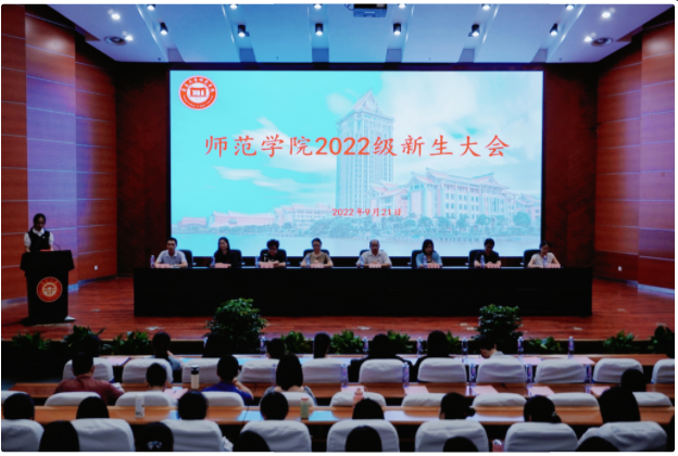 9月21日下午,师范学院于尚大楼105报告厅召开2022级新生大会。学院领导、科级干部、系(教研室)主任、全体辅导员、2022级班主任、2022级新生以及部分在校生代表参加了此次大会,会议由学院党委副书记张鸿主持。