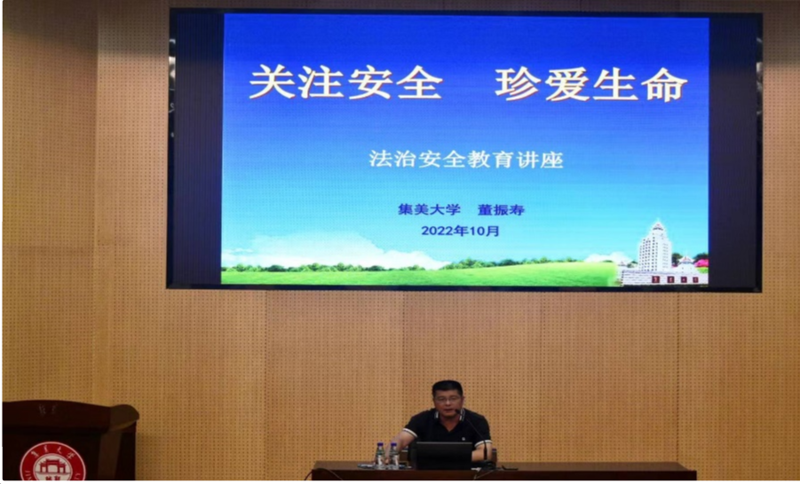 董振寿以《关注安全 珍爱生命》为主题,围绕国家安全、防骗安全、消防安全、网络安全、人身安全、心理安全等主题展开,结合自身工作经验,全方位、多角度对学生进行安全教育,通过生动案例分析安全隐患,强调学生需要保护好自身和财产安全,增强法制素养,切实提高安全意识。