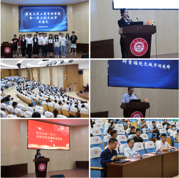 10月5日,工商管理学院于学术报告厅举办第八届三创文化节开幕式,出席本次活动的嘉宾有学院院长邱吉福、学院党委副书记董欣胜、99级校友胡力和以及学科竞赛获奖团队代表。开幕式由学院创新创业工作指导老师黄惠晶主持,学院各专业学生代表到场参会。