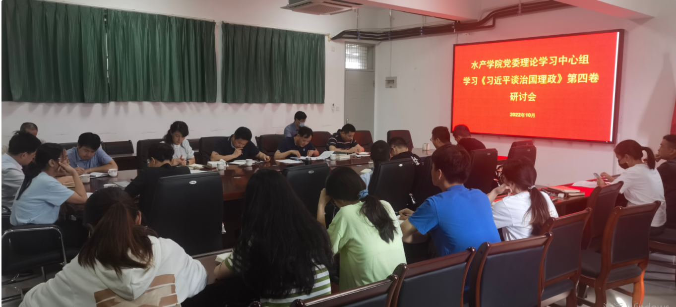 10月12日,水产学院召开党委理论中心组(扩大)会议,专题学习研讨《习近平谈治国理政》第四卷,院党政领导、科室负责人、党支部书记、辅导员参会,会议由院党委书记黄海宏主持。