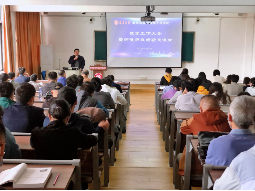 为进一步加强学院师德师风建设,提高教育教学质量,提升教师队伍的整体素质,11月30日下午,海洋装备与机械工程学院召开师德师风经验交流会。本次会议以“学习贯彻党的二十大精神 全面推进师德师风建设”为主题,由学院党委书记陆宝忠主持,学院全体教职工参加了会议。