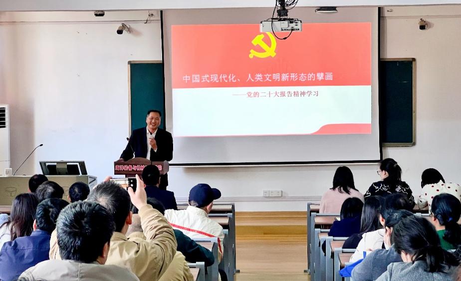 肖仕平以《中国式现代化、人类文明新形态的擘画》为题,通过深入的理论分析、丰富详实的案例实证,分别从“中华民族伟大复兴、中国式现代化、人类文明新形态”“新征程新基础:五年的工作和新时代十年的伟大变革”“新征程新要求:十二方面大政方针和厦门发展”三个方面进行了全面、系统的讲解,既解读了党的二十大精神的内涵实质,又与厦门地区发展和学院特色优势紧密结合。报告政治站位高、理论思考深、联系实际紧,对学院全体教职工学深学透、落实落细党的二十大精神提供了指导。