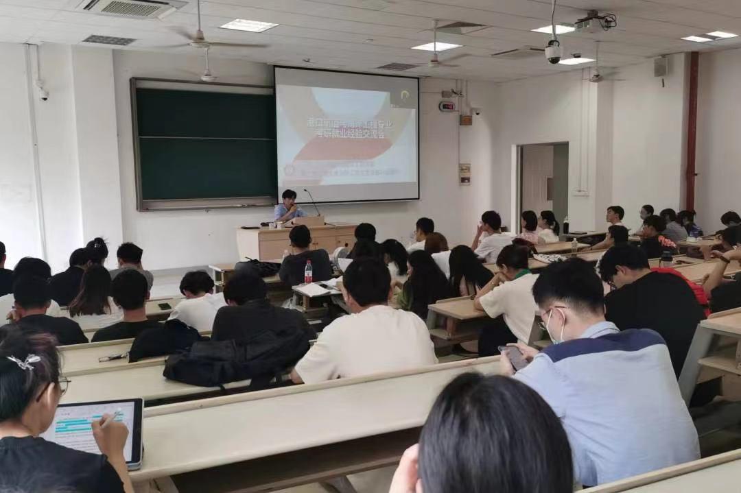 2018级和2019的7名同学分别结合自身经历跟同学们分享就业、考公和考研的经验和体会,围绕职业生涯规划、毕业选择、院校报考、复习准备等方面进行分享。港工专业教研室老师也结合专业前景和生涯规划给同学提出建议,并解答同学们的问题。