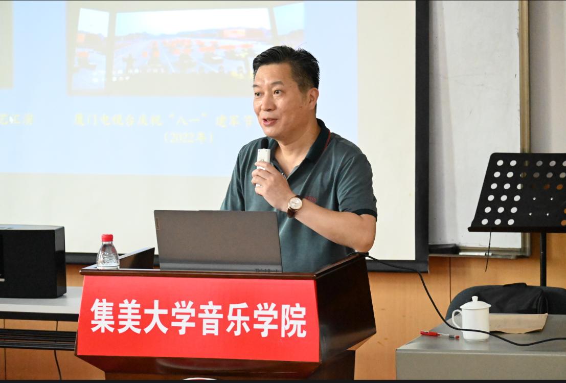5月17日下午,音乐学院举办《在歌声中结识厦门》厦门题材原创歌曲作品分享会。活动邀请中国音乐家协会会员、厦门市音乐家协会副主席、作曲家许善飞主讲,学院党政领导班子、师生代表共同出席了本次分享活动。
