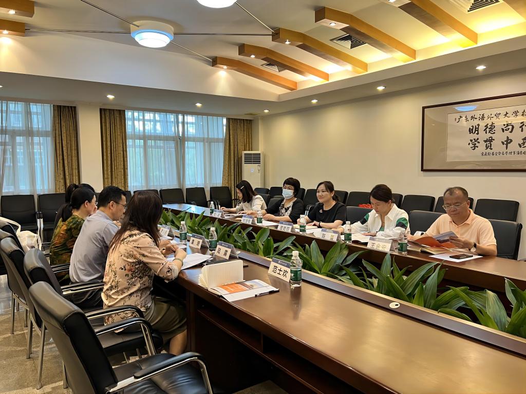 调研期间,广东外语外贸大学国际部介绍了该校60年的历史沿革和办学特色。调研组与广外国际部、教务部和经贸学院负责人就法国雷恩高等商学院3+1.5/3+2学生联合培养项目推进方案和具体做法进行了深入交流探讨。