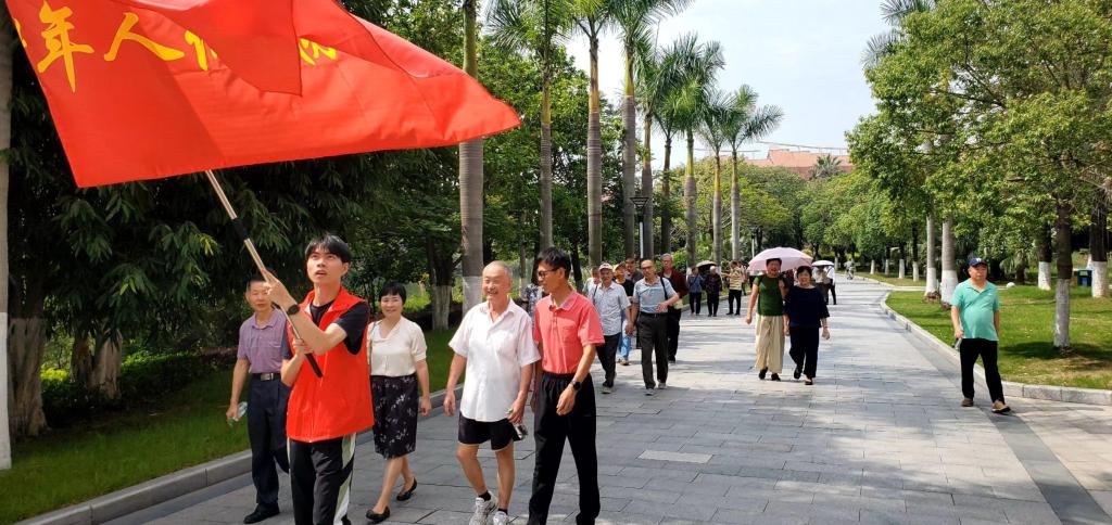 离退休教职工不忘初心,情系学校,他们年长的已82岁,但个个精神矍铄。此次校园健步行活动分片区开展,第一批有150位离退休老同志参加。