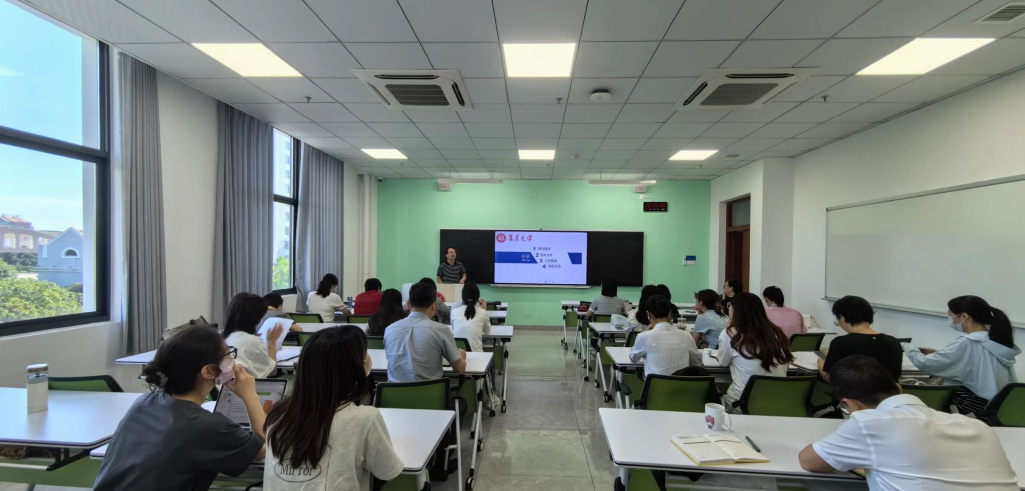 近日,海外教育学院邀请人事处专业技术职务管理科负责人为全体教师开展职称申报工作培训,副院长林伟强主持会议。
