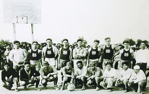 集美学校学生与美国舰队“黑鹰号”海员的篮球友谊赛。(翻拍自陈嘉庚纪念馆历史照片)