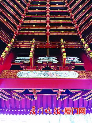 据介绍,军乐亭重建用材都非常好,八根柱子原来是石柱,重建选用了珍贵的菠萝格木,在施工工艺上采用了传统闽南建筑工艺。亭内的图画,延续陈嘉庚先生教育后代的理念,选用了二十四孝图、花鸟图。