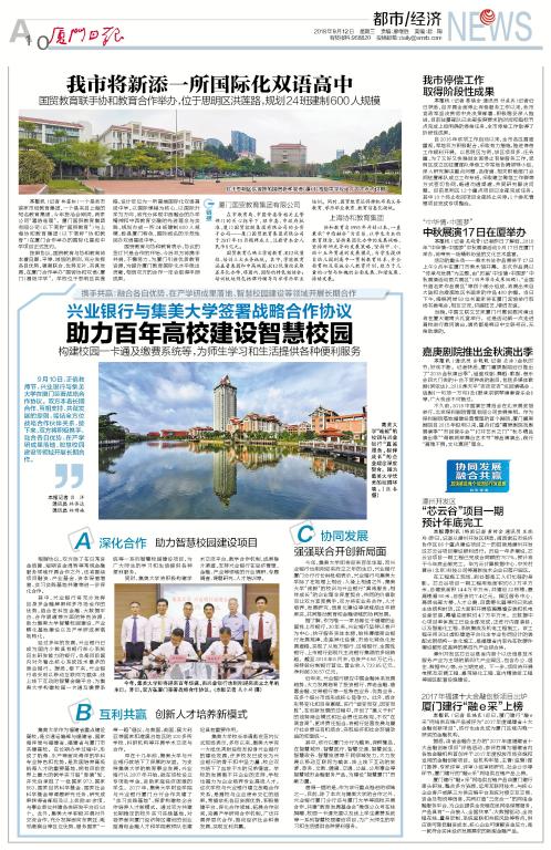 其中,该行以厦门分行为触角,深耕鹭岛,在智慧城市、智慧医疗、智慧交通、智慧民生、智慧政务、智慧旅游等不同领域发力,大力发展以移动互联网为载体、线上线下互动的旅游、政务、文教、健康、交通、公益、公用事业等智慧城市金融服务产品,为建设“智慧厦门”贡献力量。