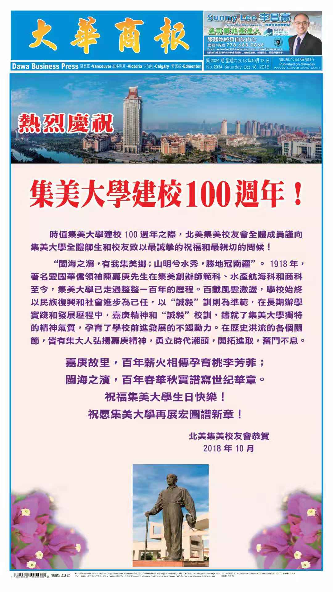【加拿大—大华商报】热烈庆祝亚洲中文精品乱码建校一百周年