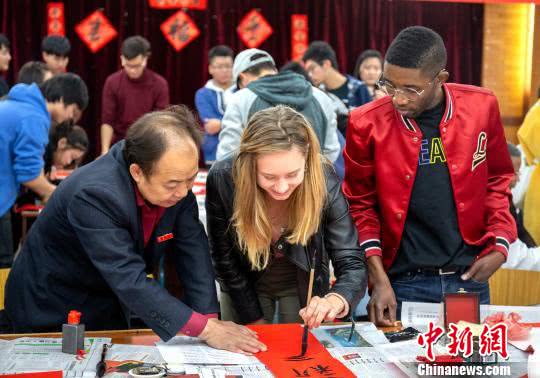 昨日,来自7个国家的40多名学生迎新春、写春联、赠春联、话传承。“这是我第一次写春联,看我写的‘春’字像不像?”来自安哥拉的梅萝,在纸上写了个“春”字,开心地跟同伴分享。
