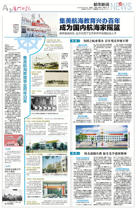 1920年2月,集美学校水产科正式开办,渔业、航业兼修。此后经历了一系列的改革演变,集美航海教育发展为如今的集大航海学院和轮机工程学院。