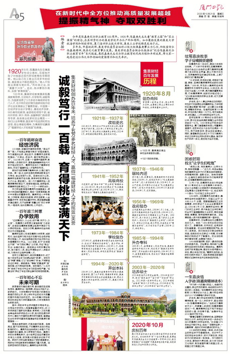 开办财经教育是陈嘉庚先生爱国爱乡、倾资兴学实践的重要部分,是他一生教育报国、振兴中华理念的重要体现。集美财经从中专教育、大专教育,再到本科教育、研究生教育,从全国重点中专、华东地区重点专科,再到福建省重点建设高校,无不诠释着“质量立校”的办学原则,一路走来,始终足履实地,心怀远方。