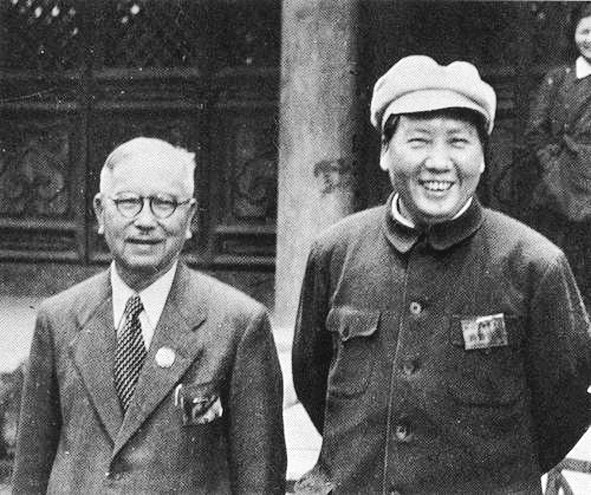 ▲毛泽东与陈嘉庚合影。