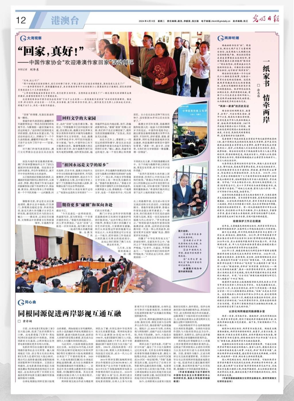 两岸观众时常能够在大小荧幕上同步观看两岸的精彩影视作品,这得益于两岸影视从业者的共同努力以及良好的引进与合拍机制保障。目前,影视作为媒介,正成为两岸文化交流的重要桥梁。共同的中华文化认同将两岸同胞紧密地联系在一起,促进形成互通互融的视听文化圈,推动两岸影视产业共同发展,做强做大中华民族的影视事业。